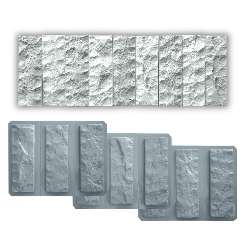As formas de ABS 2mm rock face contém 9 tijolinhos um diferente do outro! são muito flexíveis e proporcionam um desenforme fácil e prático. Possuem um alto controle de qualidade, proporcionando placas perfeitas e durabilidade superior a 2.000 moldagens no gesso e 1.000 no cimento.