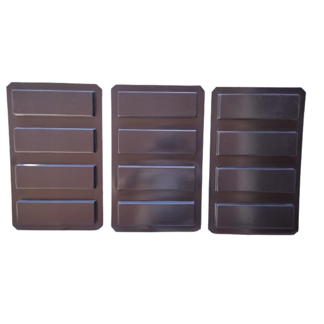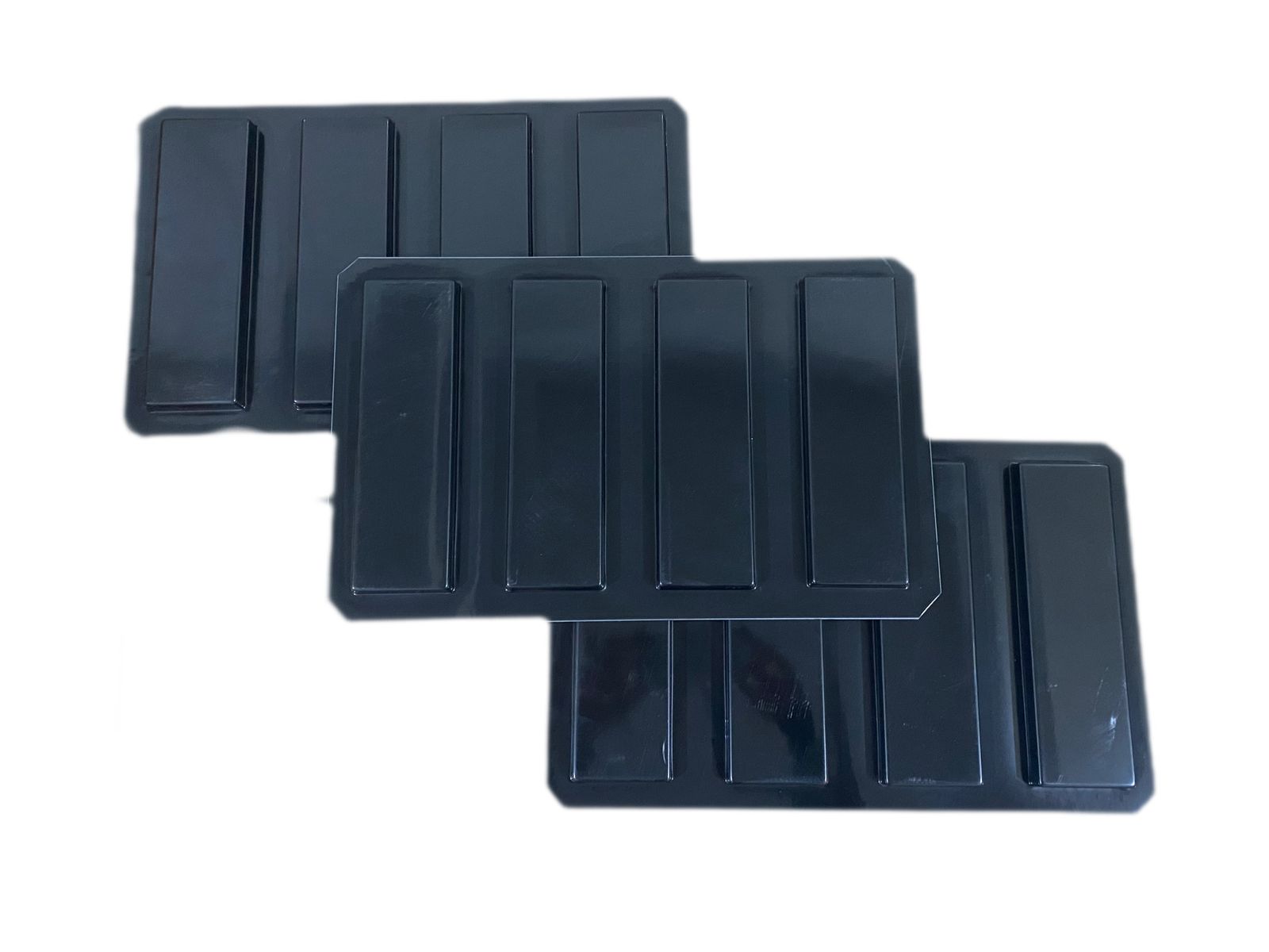 KIT COM 3 BANDEJAS CONTENDO 12 TIJOLINHOS BRICK NO TAMANHO 24 X 7 CADA, O KIT EQUIVALE A 0,2 M2. SÃO NECESSÁRIOS 60 TIJOLINHOS PARA FORMAR 1 M2. AS FORMAS DA GREENMOLD3D SÃO DE ABS VIRGEM 2MM NA COR PRETA MATERIAL DE ALTISSIMA QUALIDADE, SUA DURABILIDADE PODE UTRAPASSAR A 1000 ( MIL) PEÇAS FABRICADAS EM CIMENTO. É IMPORTANTE O USO DE DESMOLDANTE (VASELINA,SPRAY DE SILICONE DESMOLDANTE PRÓPIO PARA CONCRETO.) PARA A MELHOR CONSERVAÇÃO DA FORMA.